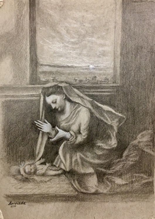 “Study for the Madonna and Child (Inspired by A. Correggio), oil on panel, 2017