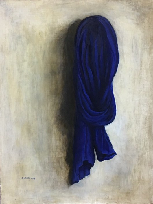 “Blue Scarf”, oil on panel, 40×60 cms, Feb 2018