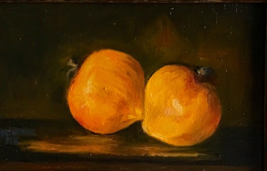 “Lemons on a Blue Plate”, oil on panel, 15×25 cms, 2016